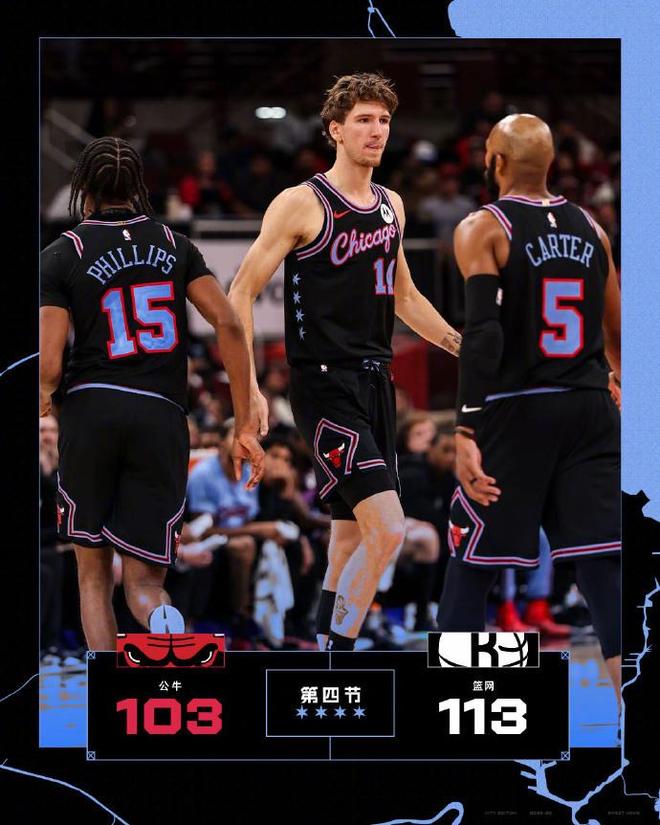 北京时间12月4日,NBA常规赛公牛主场对阵篮网,篮网在小波特33+10+5+5三分的出色表现引领下,最多时刻领先公牛19分优势,最终公牛103-113输给篮网遭遇5连败,篮网收获2连胜。